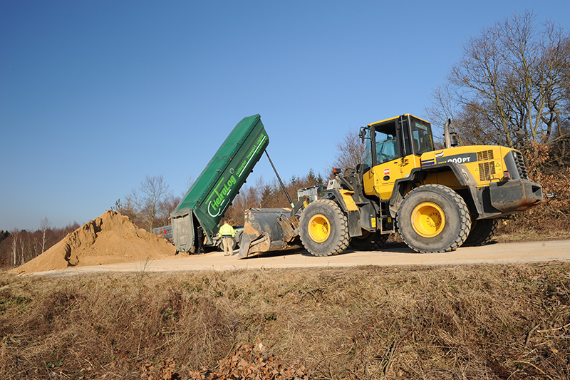 Wir übernehmen Verladetätigkeiten mit eigenem, straßenzugelassenen Radlader mit modernstem Wiegesystem und Hochkippschaufel.